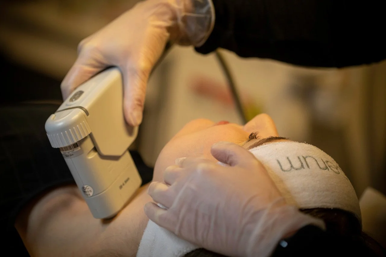 Fokusert intensiv ultralyd har en helt annen teknikk da ingenting av energien absorberes og opptas av pigment eller blodkar i den ytterste huden. Energien sendes ned og fokuseres på akkurat den dybden maskinen er innstilt på 1,5, 3 eller 4,5 mm. Huden er delt inn i epidermis (ytterste hudlag) dermis (mellomste hudlag) og subcutis (underste hudlag) Under subcutis igjen har vi en bindevevshinne som kalles SMASSuperficial Muscular Aponeurosis System. Det er denne hinnen vi vil behandle.